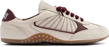 The Lisbon Cream Maroon is a P448 sacchetto-designed retro soccer silhouette that uses a handmade process to bring you extra softness, flexibility and comfort. Sleek all-over white leather and cream suede are complemented by a maroon leather heel tab and contrast stitching. Burgundy laces and our raised gum tread finish off the look. Swap in the extra pair of cream laces for a monochromatic moment.