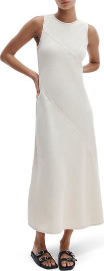 Diagonal seams create dimension on this lightweight cotton-blend maxi cut in a sleeveless silhouette.