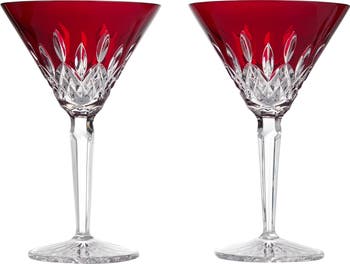 Waterford's signature hand-cut design, originally introduced in 1952, sparkles on these crystal glasses made with red-tinted accents that bring a modern touch to the classic pattern.