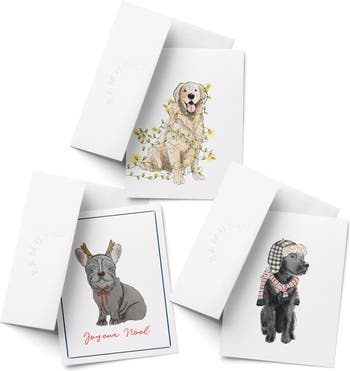 Lit Retriever, Reindeer Frenchie Dog, Black Lab Winter/Holiday/Christmas Greeting Card Pack Sets