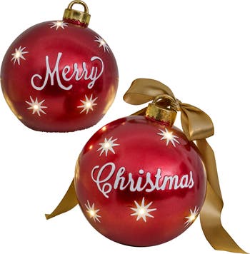 Balsam Hill Lit Tabletop Merry Christmas Ornament Set, Alternate, color, Red & White