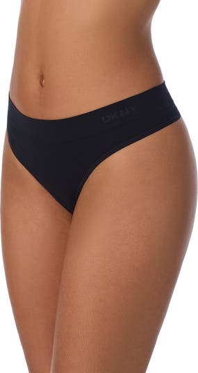 An ultrafine, seamless knit sets the supersmooth foundation of everyday mid-rise thongs further flattered by a long-embellished waistband.