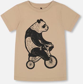 Little Boy's Organic Cotton Graphic Tee Black Panda On Beige Background