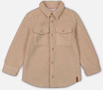Little Boy's Soft Fleece Overshirt With Pocket Beige