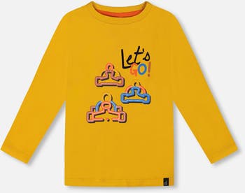 Colorful karts add super cute charm to our T-Shirt with Print Mustard Yellow. In soft and stretchy organic cotton fabric, this tee features long sleeves, a round neckline, and a large print on the chest. It mixes and matches perfectly with every bottom and hoodie in our Formula 1 collection!