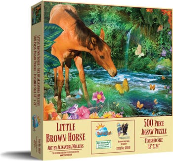 Experience tranquility and beauty with the Little Brown Horse 500 Piece Jigsaw Puzzle by SunsOut Puzzles. This adult puzzle, featuring enchanting nature artwork by Alixandra Mullins, uses superior quality recycled cardboard for its pieces, enhancing the puzzle-solving experience and ensuring durability. All pieces are designed to fit securely together, and in case of missing or damaged pieces, a worry-free guarantee is in place. Commitment to eco-friendly practices is evident in SunsOut Puzzles, with all products made in the USA using soy-based inks and high-quality recycled-board. The precision-cut interlocking, random-shaped pieces highlight fully-licensed artwork by top artists, reflecting a dedication to creativity and sustainability. And the best part? By choosing this puzzle, you're supporting SunsOut Puzzles, a proudly woman-owned small business that values quality, creativity, and sustainability. Enjoy the embracing world of vibrant colors and intricate landscapes with the Little Brown Horse 500 Piece Jigsaw Puzzle – a relaxing endeavor that results in a masterpiece worth displaying.