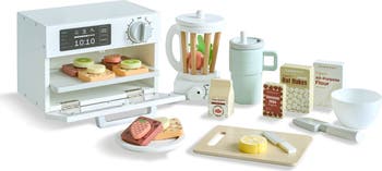 Promote real-world learning and the development of fine motor skills as your tiny chef serves up tons of fun with this interactive healthy-dessert playset complete with fruits, oat bars, a stylish tumbler and more.