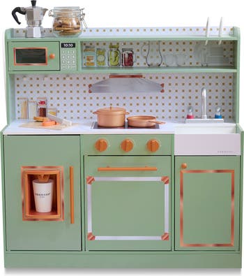 Ignite your little one's culinary creativity with this kitchen play set including cooking accessories and tons of storage for hours of make-believe fun.