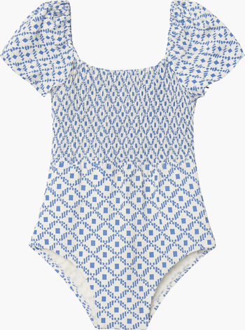 Splash into fun with our Little Delilah One-Piece in Santorini Dots! This adorable swimsuit features a sweet smocked top and cute capped sleeves that make pool days extra special. Perfect for your little water sprite, it offers full coverage protection while she builds sandcastles, chases waves, or shows off her best cannonball. Watch out, world – here comes your little swimming star!