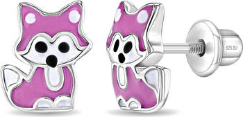This beautiful pair of sitting fox design studs are a timeless and elegant addition to any of your young girl's fun and fashionable jewelry collection. Crafted in 925 sterling silver which are suitable for those with sensitive ears, these were secured with safety screw backs for children. These attractive earrings feature bright and colorful enamel colors for a more fashionable look. Buy a pair for someone special in your life and it will be cherished for a long time. A complimentary gift box is included.