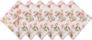 Little Garden Easter Rabbit Bunnies Graphic Print Set of 6 Cloth Napkins