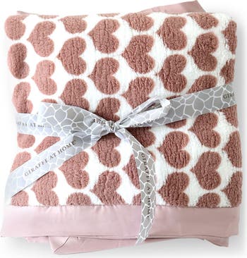 An adorable heart-patterned blanket in ultracozy fabric serves as a handy accessory for snuggling, relaxing in the stroller or playing on the floor.