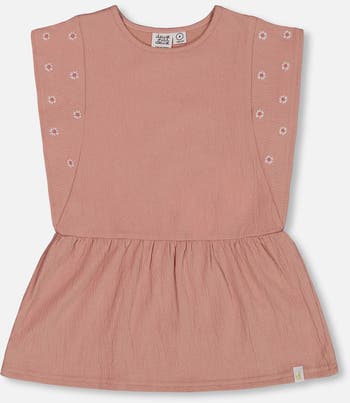 Little Girl's Crinkle Jersey Tunic With Embroidery Dark Old Pink