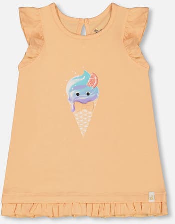 Little Girl's Organic Cotton Tunic With Frill And Print Light Orange And Ice Cream Cone