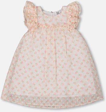 Little Girl's Printed Dress With Frills Pale Pink And Flowers