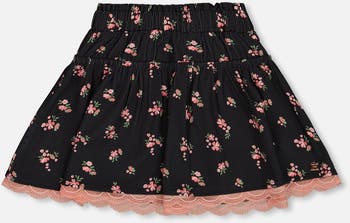 Little Girl's Printed Flowers Flare Viscose Skirt Black
