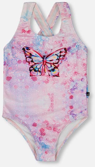 If she loves butterflies, she's sure to adore our Printed One-Piece Swimsuit Pink Butterflies with Bubble Effects. In a colorful and comfortable one-piece silhouette, this swimsuit features wide straps that crisscross in back, a scoop neckline, and an eye-catching butterfly print. The fabric also offers UPF 50+ UV protection to help keep her safe in the sun.