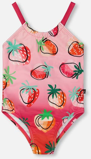 Little Girl's Printed One-Piece Swimsuit Pink Gradient Strawberry