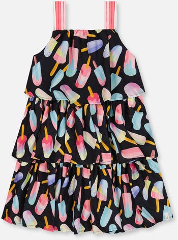With its colorful allover popsicle print, our Printed Tiered Dress Ice Lollipops and Black is sure to become her favorite new warm weather look. Ultra-sweet in a tiered silhouette with overlays that swing and flow, this dress features wide striped straps, a square neckline, and an A-line silhouette that makes it super comfortable to wear. In this dress, she'll make a bold statement and stand out in the crowd!