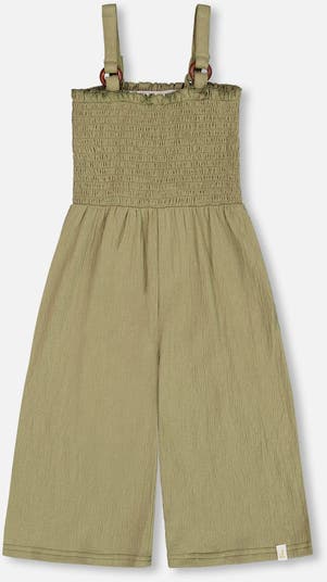 Little Girl's Smocked Crinkle Jersey Jumpsuit Olive Green