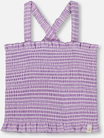 Make summer days oh-so-sweet with our Smocked Tank Top Lilac. With allover elastic smocking for a soft and stretchy fit, tank features a square neckline, ruffle trim at the neckline and hem, and wide straps that crisscross in back. Team it with a matching short for head to toe coordination!