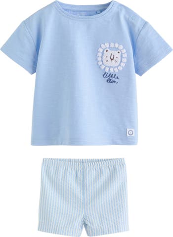 Your little lion will be roaring with comfort in this cool cotton T-shirt and seersucker shorts set.