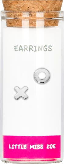 Little Miss Zoe Kids' Sterling Silver X/O Stud Earrings in Gift Bottle, Main, color, Silver