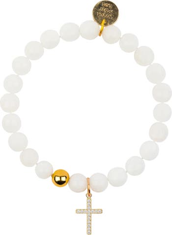 Semi-Precious Gemstone Cross Charm Bracelet in Gift Pouch