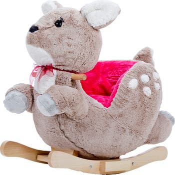 GERARDO'S TOYS: LITTLE ROCKERS - DEER - WOODEN PLUSH RIDE-ON ROCKING ANIMAL TOY FOR BABY. Little Rocker is an exclusive, high-quality rocker designed in Europe to provide your child with the utmost comfort and safety while they play. Crafted from the finest materials, each Little Rocker has a comfortable high-back padded seat, ensuring your child is secure while riding. Our innovative design eliminates the need for a safety belt, allowing the child to sit snugly and securely within the rocker's seat. This exquisite wooden plush ride-on rocking animal toy is designed to provide hours of entertainment and developmental benefits for your baby. Ideal for ages 24 months and up, this rocker combines style, safety, and comfort in one delightful package. The durable wooden handles provide a good grip for your child while the soft cozy fabric can be easily removed with the zipper to be cleaned (hand-wash only). The Little Rocker also plays a piece from Mozart to engage your child's senses and keep them entertained while they develop balance, motor skills, musical awareness and strengthen their muscles. When not in use, the cute and elegant design also makes the Little Rocker a great decorative element for your child's bedroom or play area. Batteries included, and easy to replace to keep the fun going. Suitable for children 24 months or older, up to 77lbs. Make playtime fun and beneficial for your child with the Little Rocker, providing endless entertainment, aiding in your child's developmental milestones, and all while looking great in your home.