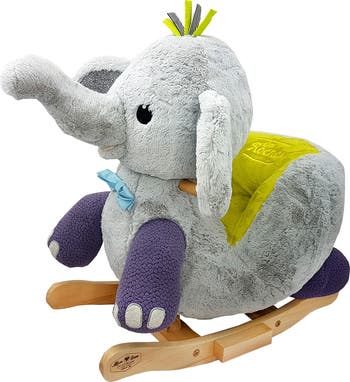 GERARDO'S TOYS: LITTLE ROCKERS - ELEPHANT - WOODEN PLUSH RIDE-ON ROCKING ANIMAL TOY FOR BABY. Little Rocker is an exclusive, high-quality rocker designed in Europe to provide your child with the utmost comfort and safety while they play. Crafted from the finest materials, each Little Rocker has a comfortable high-back padded seat, ensuring your child is secure while riding. Our innovative design eliminates the need for a safety belt, allowing the child to sit snugly and securely within the rocker's seat. This exquisite wooden plush ride-on rocking animal toy is designed to provide hours of entertainment and developmental benefits for your baby. Ideal for ages 24 months and up, this rocker combines style, safety, and comfort in one delightful package. The durable wooden handles provide a good grip for your child while the soft cozy fabric can be easily removed with the zipper to be cleaned (hand-wash only). The Little Rocker also plays a piece from Mozart to engage your child's senses and keep them entertained while they develop balance, motor skills, musical awareness and strengthen their muscles. When not in use, the cute and elegant design also makes the Little Rocker a great decorative element for your child's bedroom or play area. Batteries included, and easy to replace to keep the fun going. Suitable for children 24 months or older, up to 77lbs. Make playtime fun and beneficial for your child with the Little Rocker, providing endless entertainment, aiding in your child's developmental milestones, and all while looking great in your home.