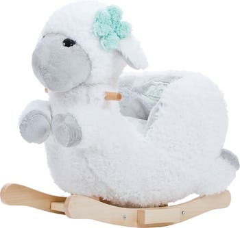 GERARDO'S TOYS: LITTLE ROCKERS - SHEEP - WOODEN PLUSH RIDE-ON ROCKING ANIMAL TOY FOR BABY. Little Rocker is an exclusive, high-quality rocker designed in Europe to provide your child with the utmost comfort and safety while they play. Crafted from the finest materials, each Little Rocker has a comfortable high-back padded seat, ensuring your child is secure while riding. Our innovative design eliminates the need for a safety belt, allowing the child to sit snugly and securely within the rocker's seat. This exquisite wooden plush ride-on rocking animal toy is designed to provide hours of entertainment and developmental benefits for your baby. Ideal for ages 24 months and up, this rocker combines style, safety, and comfort in one delightful package. The durable wooden handles provide a good grip for your child while the soft cozy fabric can be easily removed with the zipper to be cleaned (hand-wash only). The Little Rocker also plays a piece from Mozart to engage your child's senses and keep them entertained while they develop balance, motor skills, musical awareness and strengthen their muscles. When not in use, the cute and elegant design also makes the Little Rocker a great decorative element for your child's bedroom or play area. Batteries included, and easy to replace to keep the fun going. Suitable for children 24 months or older, up to 77lbs. Make playtime fun and beneficial for your child with the Little Rocker, providing endless entertainment, aiding in your child's developmental milestones, and all while looking great in your home.