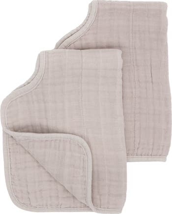 This twin pack of burp cloths are cut in an innovative shape for a full-coverage fit from four absorbent layers of cotton muslin.