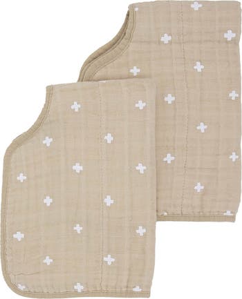 Playful prints pattern this soft burp cloth made from lightweight, absorbent cotton muslin with an innovative shape to keep you clean and dry.