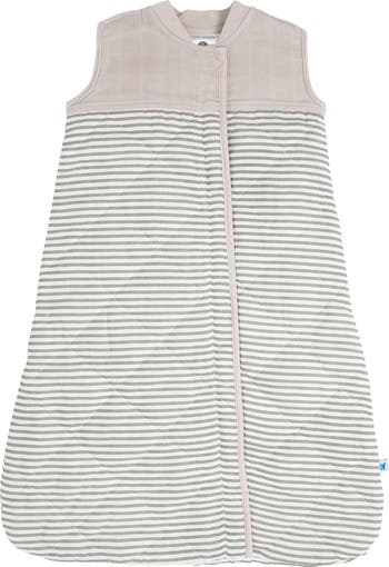 Breathable and lightweight cotton muslin keeps baby cozy and comfortable in this wearable blanket that features a playful print and a two-way zipper.