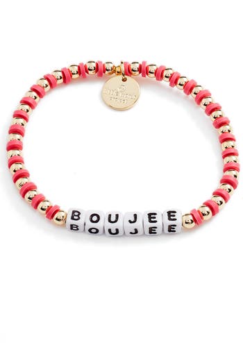 Show off your true self with this stretch bracelet that's beaded with a 'Boujee' design.