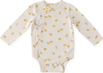 Snaps and bows give a kimono-inspired look to this supersoft organic-cotton romper framed by cozy long sleeves.