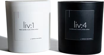 - liv:4 made with notes of sandalwood, musk, and white amber, this candle features all-natural coconut wax and a 100% cotton wick in an elegant 8oz container that can burn for up to 60 hours.