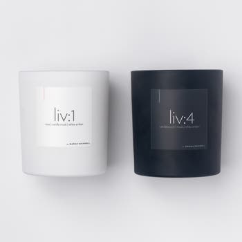 - liv:4 made with notes of sandalwood, musk, and white amber, this candle features all-natural coconut wax and a 100% cotton wick in an elegant 8oz container that can burn for up to 60 hours.