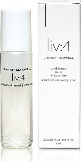 - With alluring notes of Sandlewood, Musk, and White Amber. liv:4 emanates refinement and seduction in a 10 ml roll-on fragrance. Crafted from a blend of essential oils and absolutes, our perfumed oils are free from alcohol and filler oils.