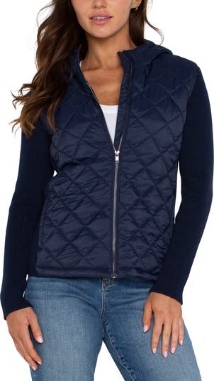 A stretchy, sweater-knit back and sleeves create the slim fit and sporty feel of this jacket with a lightly quilted front panel in a just-right weight to keep you warm as the temps start to cool.