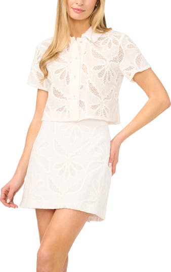 Broderie anglaise detailing brings textured depth to this subtly cropped button-up top where a crisp point collar and boxy fit balance polished poise with modern proportions.