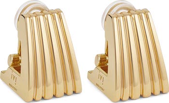 Signature ribbing textures geometric clip-on earrings that frame your face in luster.