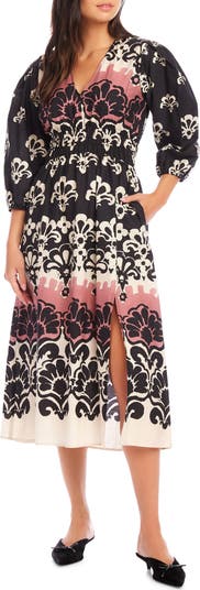 Move stylishly from day to night in this crisp poplin midi designed in a bold print and shaped by a smocked waist.
