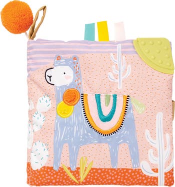 Keep your little one's brain happily developing with this sensory book designed in a mix of must-touch fabrics and bright colors. The sweet llama book is sized perfectly for storing in your diaper bag and features sensory-pleasing fabrics and fun crinkly sounds. A baby-safe mirror inside gives baby their first mini lesson in self-discovery.