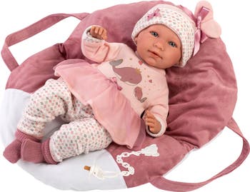 This beautifully detailed baby doll with an articulated body is dressed in an adorable whale-themed outfit and loves to nestle on her cozy cushion. Selena cries three times and says 'mama' and 'papa' but she is able to suck her pacifier to calm down. Made with movable joints, this doll sparks the imaginations of children as they develop nurturing and self-help skills.