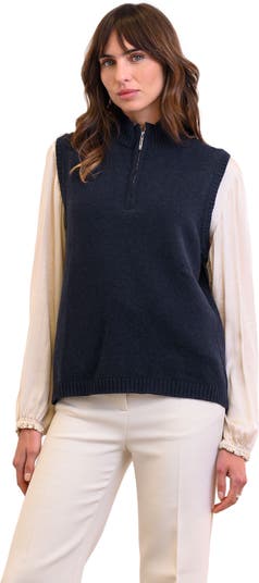 Featuring a funnel neckline with a quarter-length metal zip, this sleeveless top is perfect for layering. Made from soft Merino lambswool, it combines comfort and functionality for versatile wear.