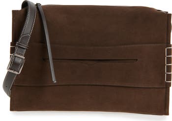 A topstitched 'keeper strap' inspired by classic prepster loafers details this Italian-suede bag updated in a versatile messenger silhouette.