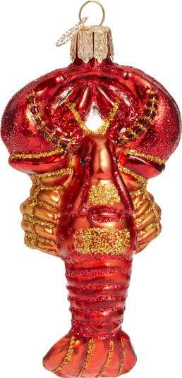 Add a playful touch to your holiday decorations with this glitter-trimmed, hand-painted lobster glass ornament.