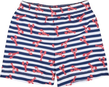 A classic coastal favorite, these swim trunks feature a white, red, and navy stripe lobster print on lightweight supplex for easy comfort in and out of the water. The playful nautical motif feels right at home for summer vacations, seaside outings, and festive days by the pool. Designed with an inside waist drawstring for a secure fit and a built-in jock liner for comfort and coverage, they’re made for all-day swimming, splashing, and summer fun.