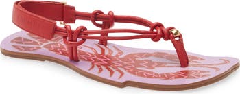 Everyone knows lobster equals fancy, so give your feet a treat with this playfully opulent sandal featuring tubular leather straps, golden hardware and a lobster-shaped, appropriately printed footbed.